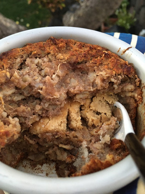 Transfer 1/2 batter to an oven safe bowl or single serving pan.
